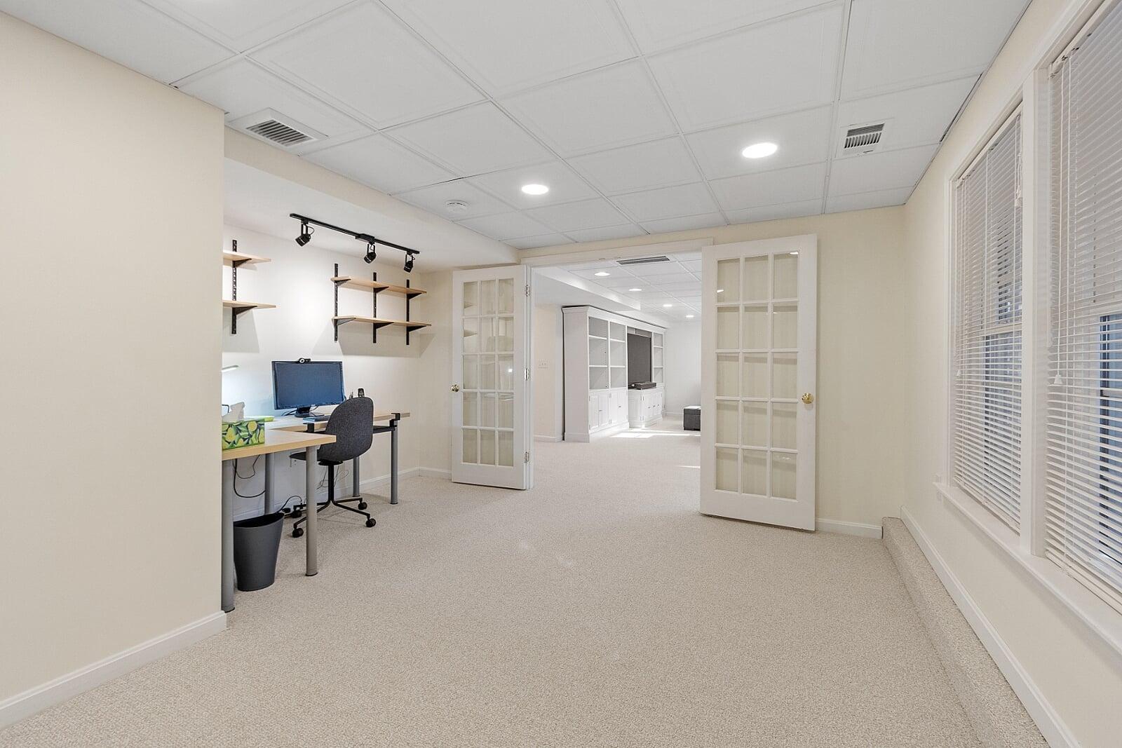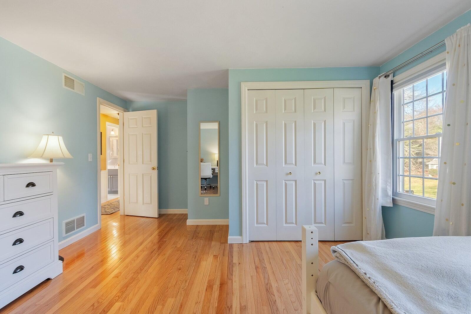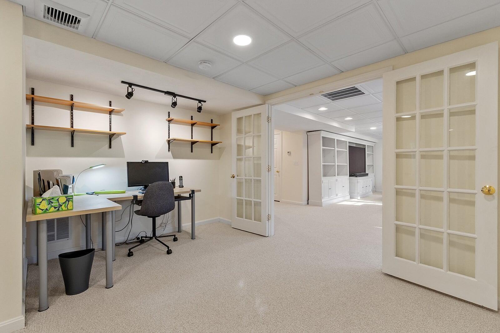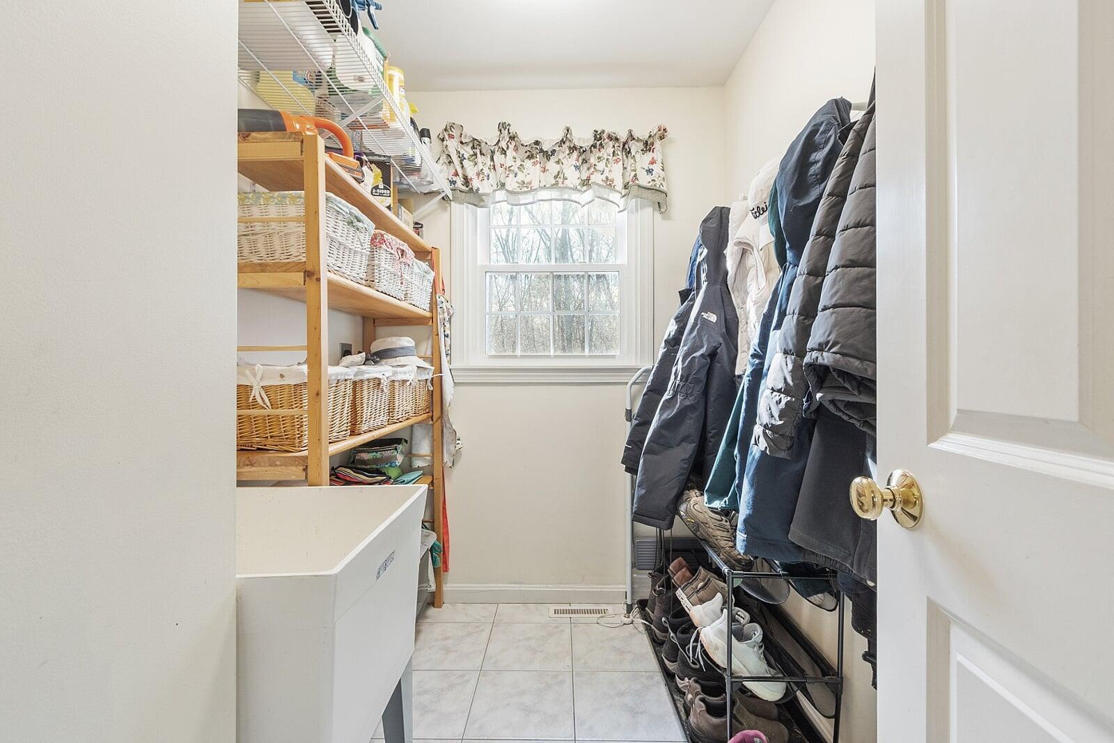 - Designer walk-in closet system featuring drawers, hampers, and mixed hanging