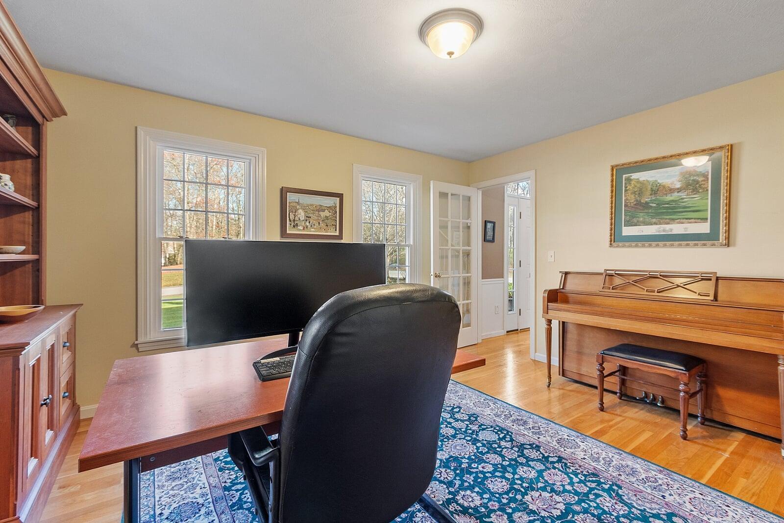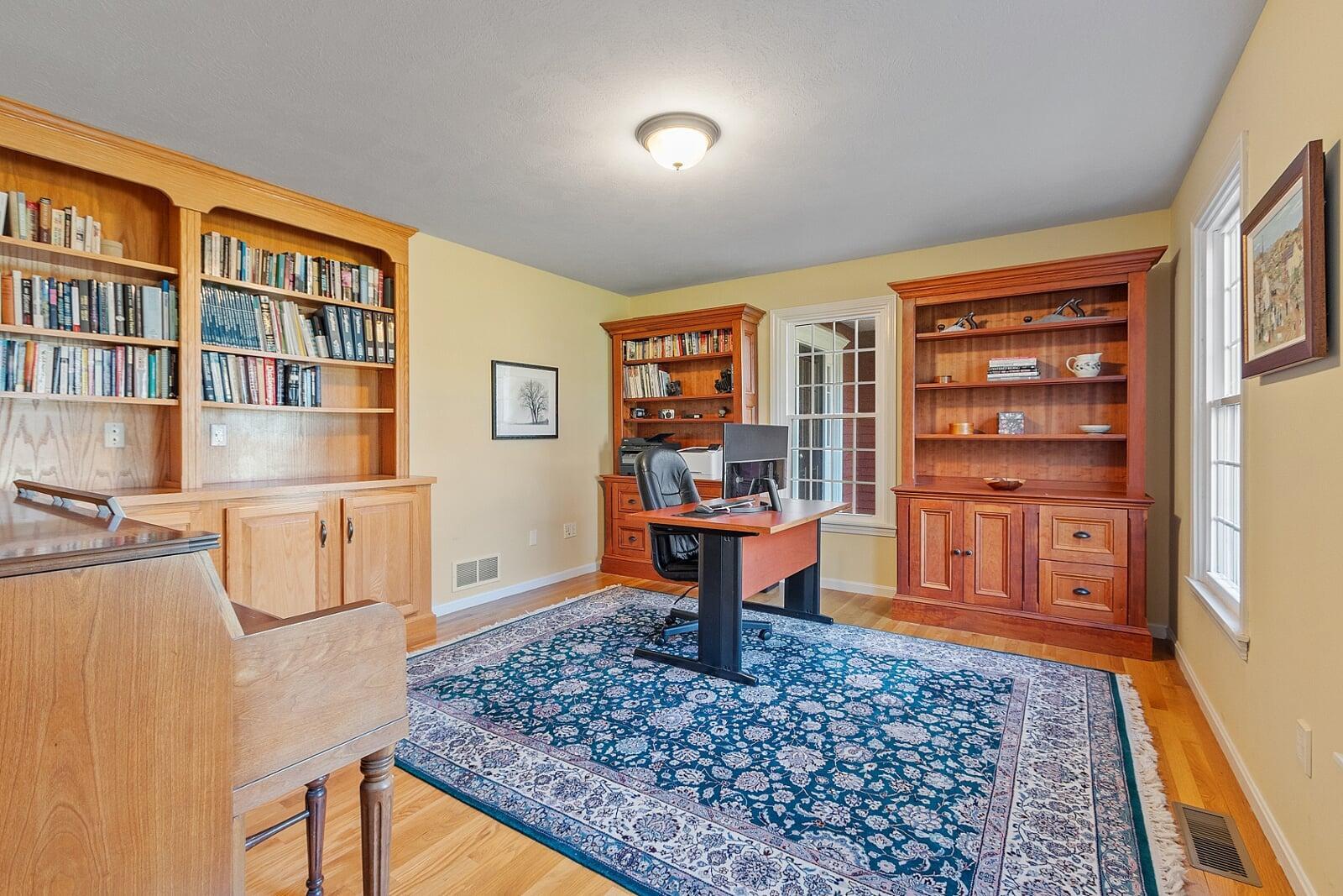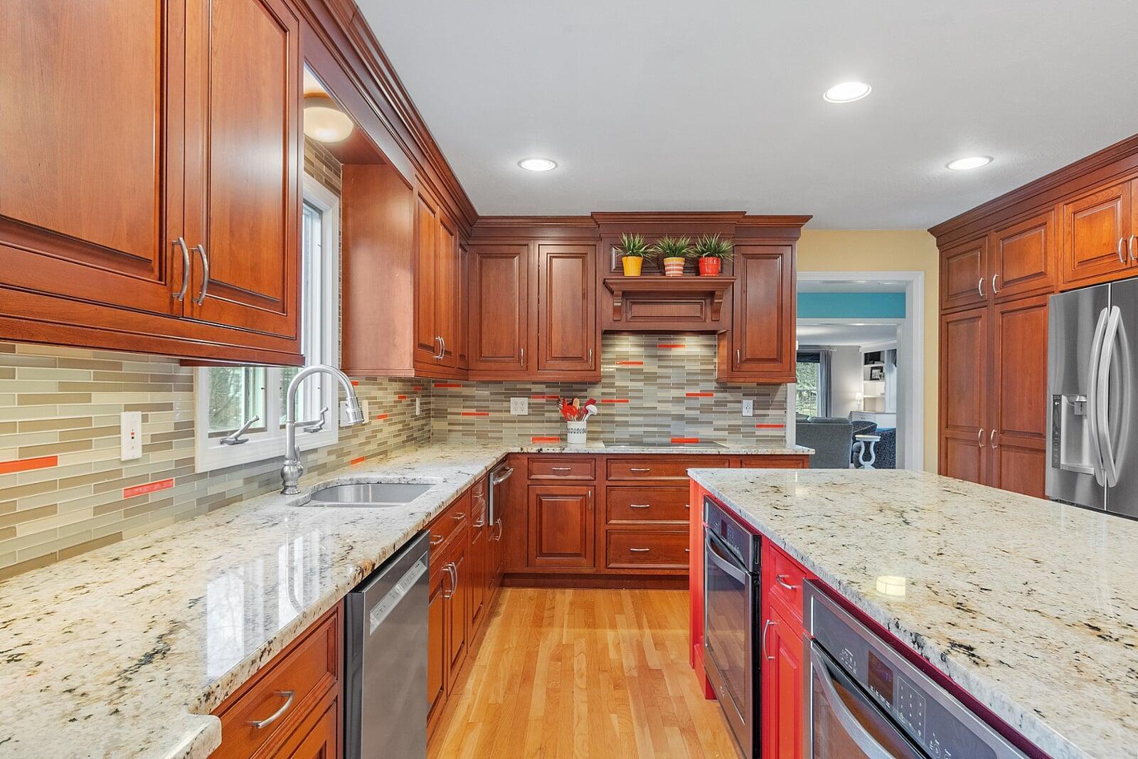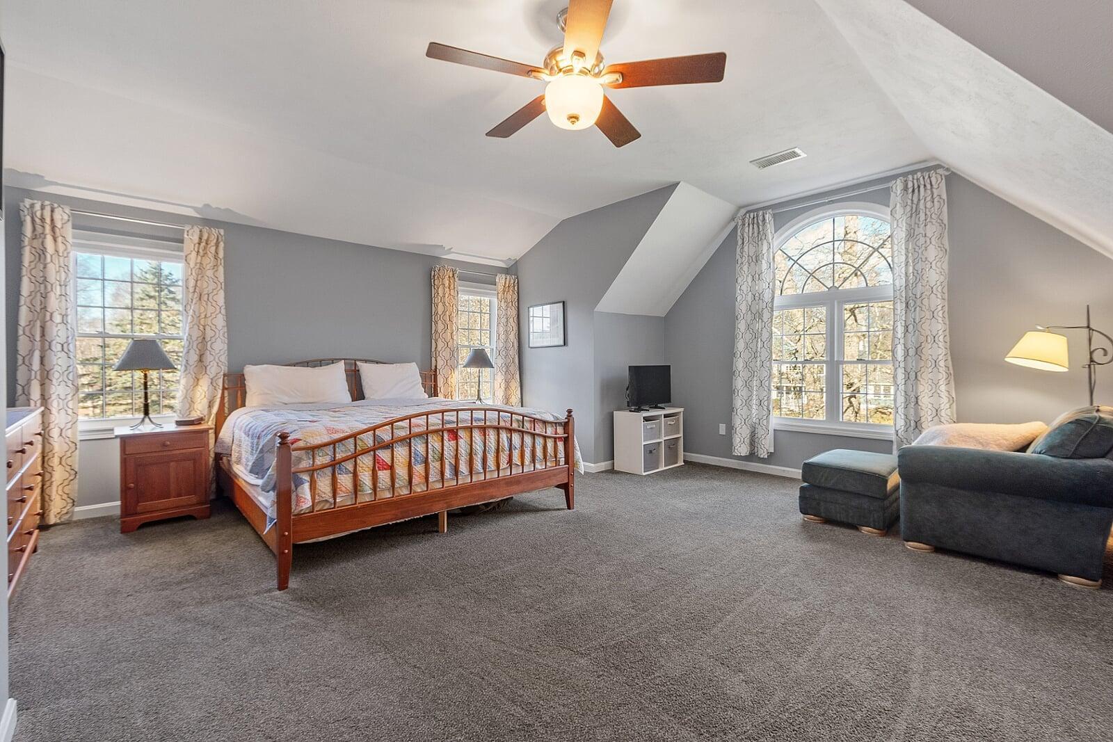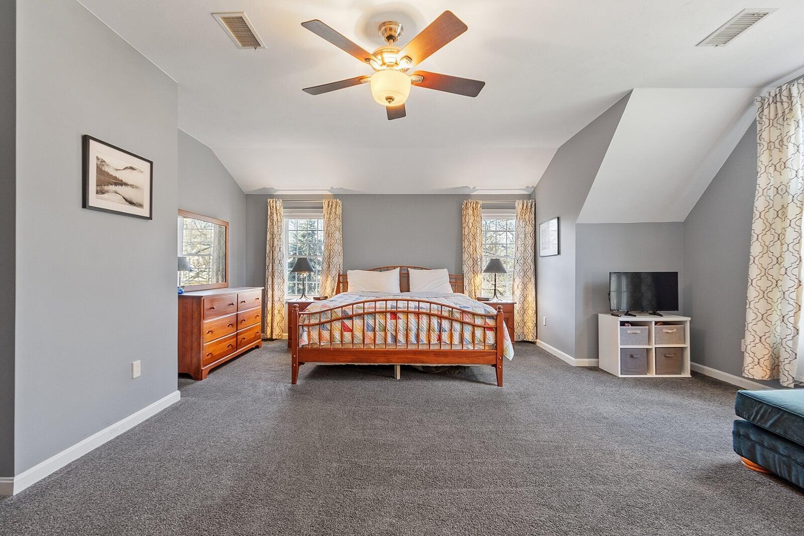 - Designer walk-in closet system featuring drawers, hampers, and mixed hanging